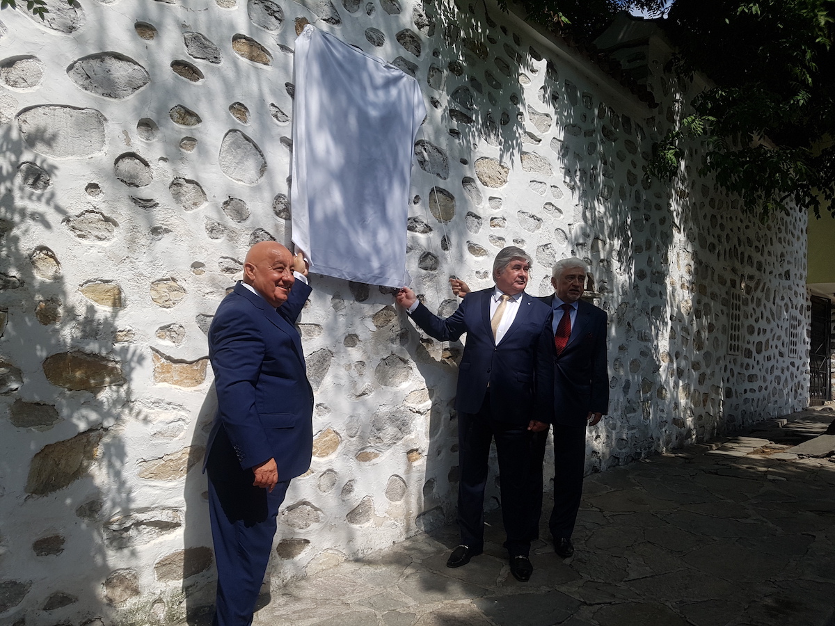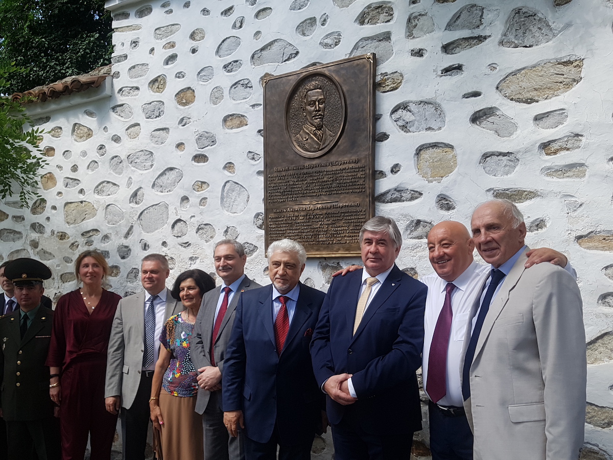 Мемориальную доску князю А. Церетелеву открывают Почетный консул России в Пловдиве Г. Гергов, Посол России в Болгарии А. Макаров, Директор Фонда ветеранов дипломатической службы, Посол В. Чхиквадзе