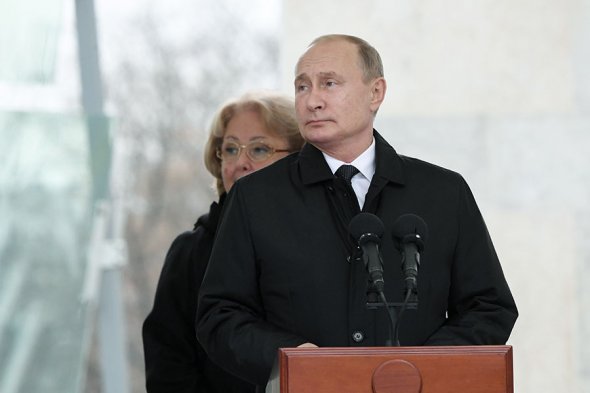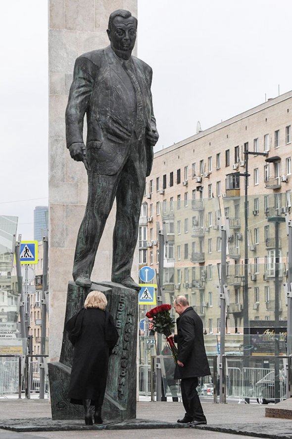 Владимир Путин и Ирина Примакова возлагают цветы к памятнику