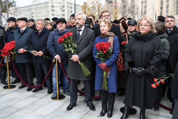 Депутат Государственной думы, председатель наблюдательного совета АНО «Русская гуманитарная миссия», внук Евгения Примакова Евгений Примаков (в центре), дочь Евгения Максимовича Нана и супруга Ирина Борисовна Примакова.