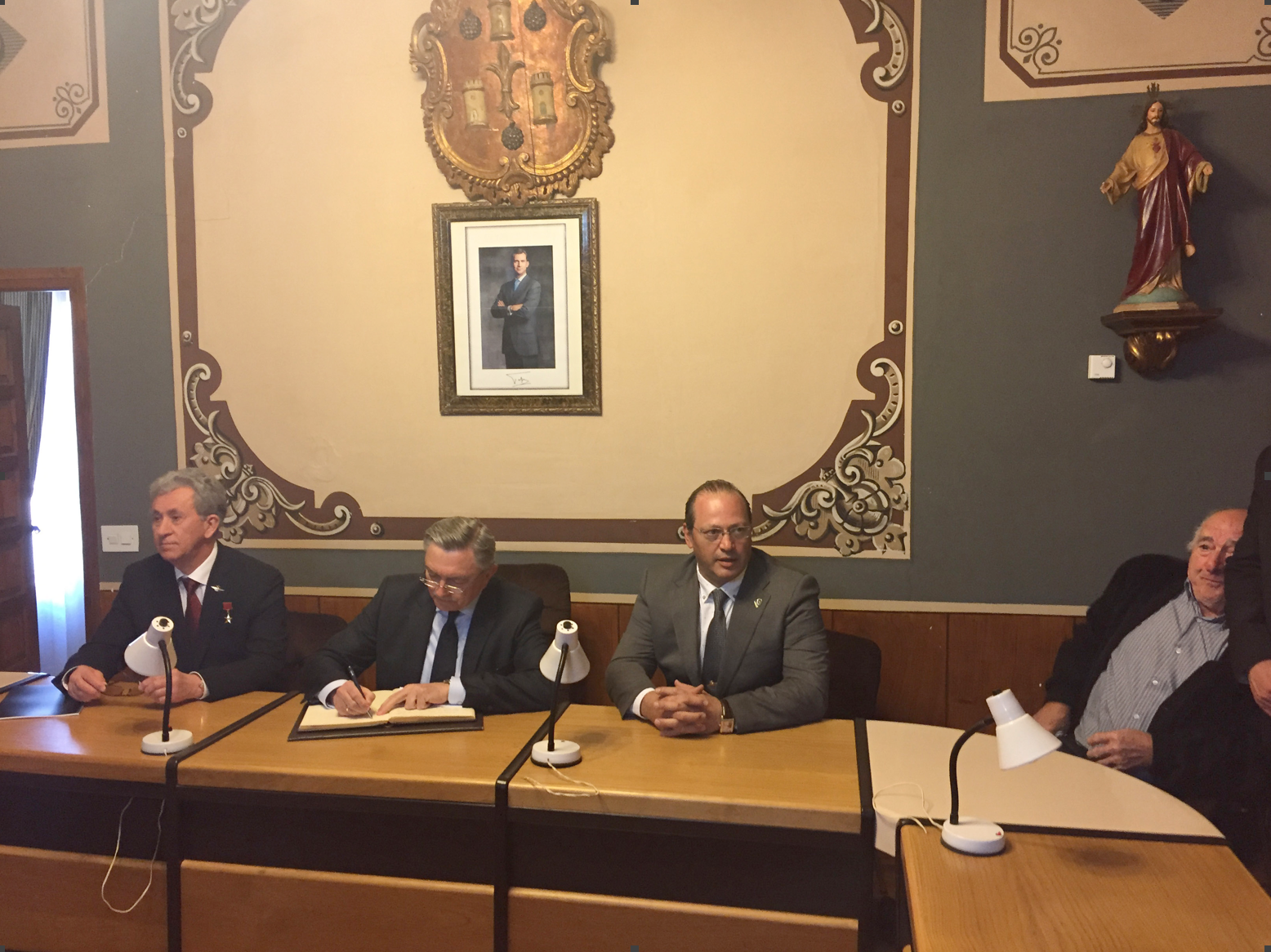 Посол России в Испании Ю.П. Корчагин делает запись в книге почетных посетителей в мэрии г. Мора-де-Рубельос.