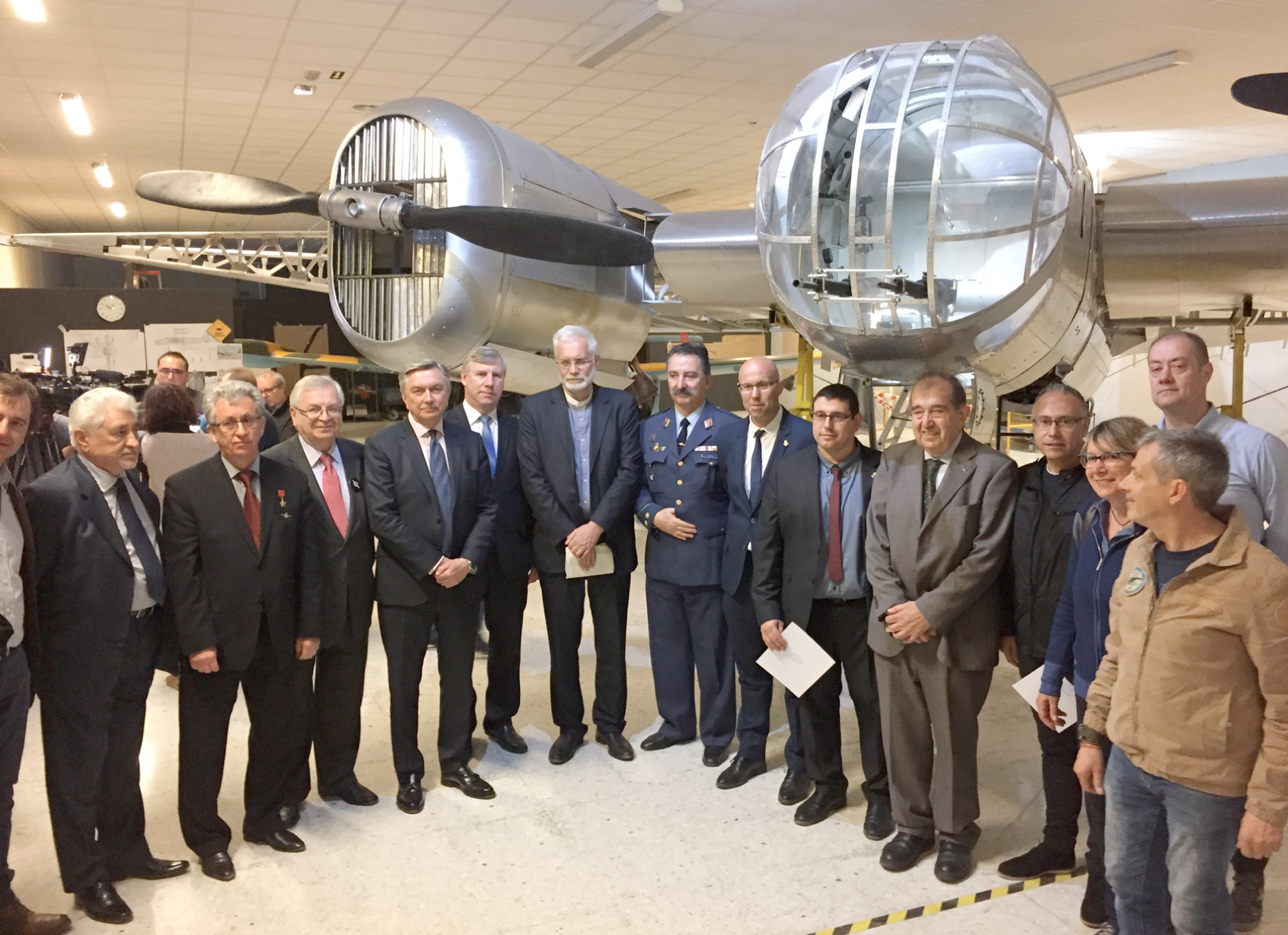 Российская делегация у макета советского бомбардировщика СБ-2 в Музее республиканской авиации в г. Ла Сенья (Испания).
